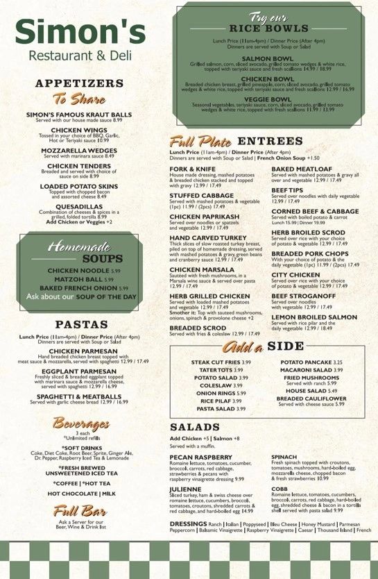 Copyright © 2018 Simon's Restaurant & Deli - All Rights Reserved.